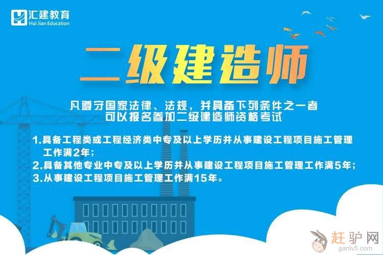 (- -)凡遵纪守法,具备工程类或工程经济类中等专科以上学历并从事建设工程项目施工管理工作满2年的人员,可报名参加二级建造师执业资格考试g.a.n.l.v.5.c.o.m。