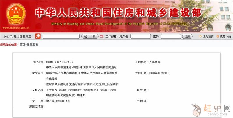 近日住建部、交通运输部、水利部联合人力资源社会保障部正式印发《监理工程师职业资格制度规定》、《监理工程师职业资格考试实施办法》来源www.ganlv5.com。监理工程师改革实锤,门槛变高了,监理瞬间高大上了,征求意见稿是说管理学,现在正式文件说管理科学与工程,可见是要专业人士的来源www.ganlv5.com。