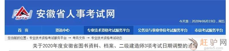 根据我省新冠肺炎疫情防控进展情况,经商有关部门,原计划于今年上半年举行的赶+驴+网2020年度安徽省图书资料、档案、二级建造师3项考试调整至今年下半年举行。具体安排如下:
